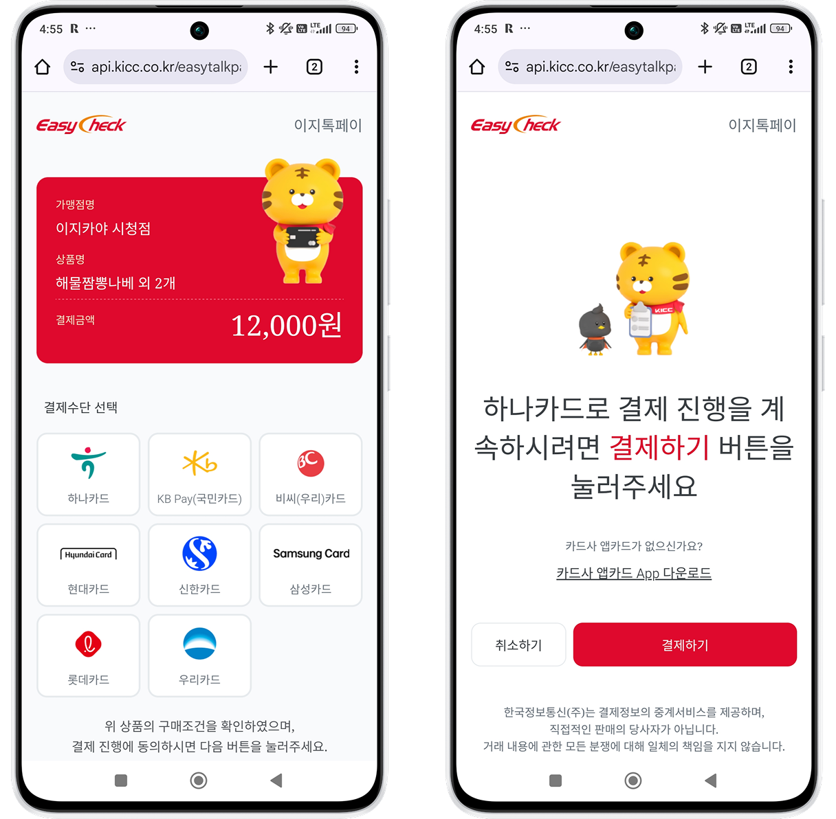 • 이지톡페이란 KICC의 비대면 간편결제 서비스로, 오프라인 신용카드 가맹점에서 EasyQR 선결제 시 연동되어 결제 편의성을 제공합니다.