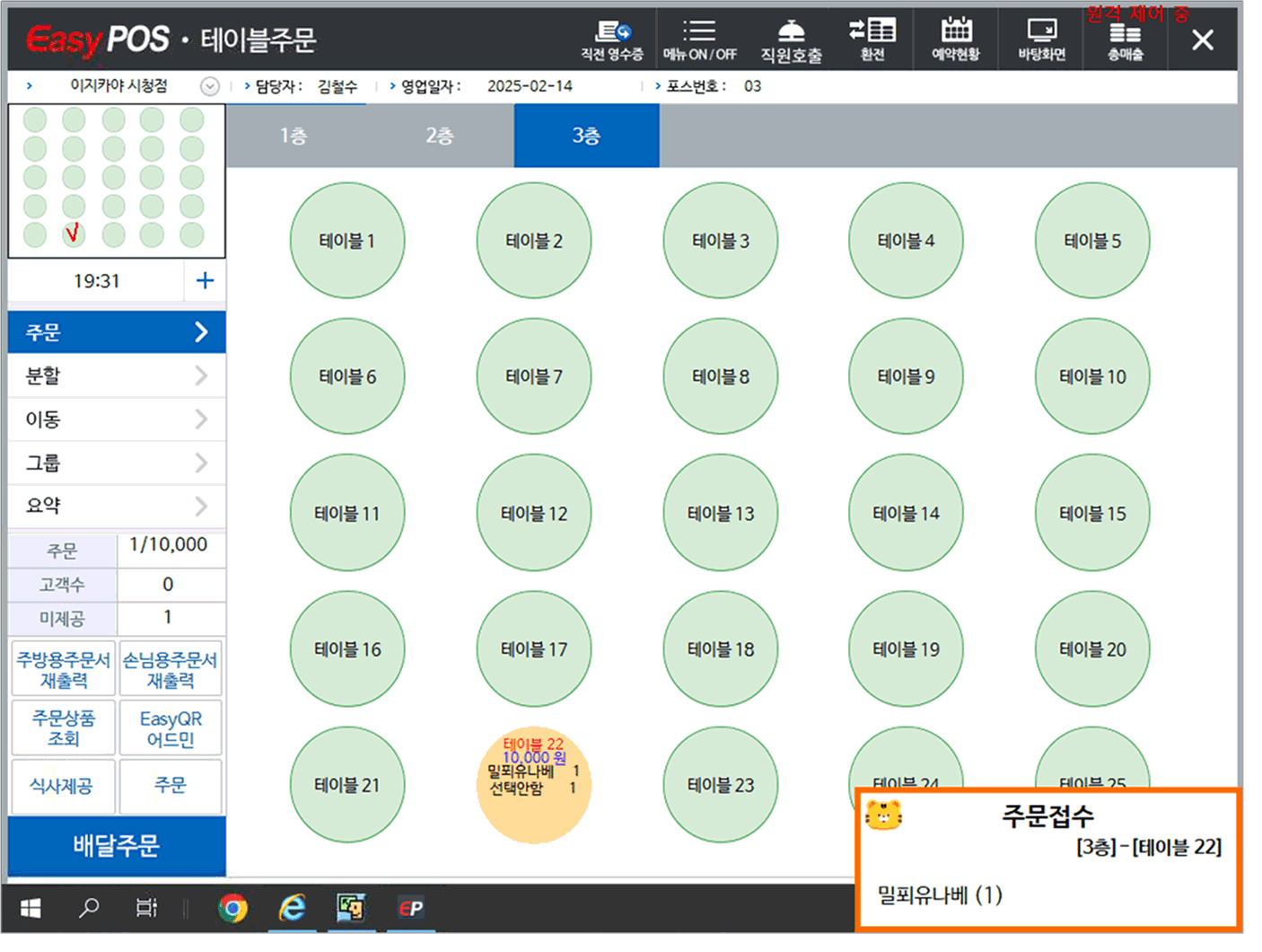 • EasyQR에서 고객이 주문하면 이지포스 테이블에 주문이 표시되고, 주방프린터로 출력 됩니다.